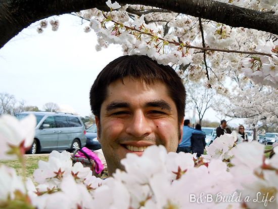 Cherry blossom sprigs were selected because they’re in many ways a symbol of DC, where Bill and I met.
