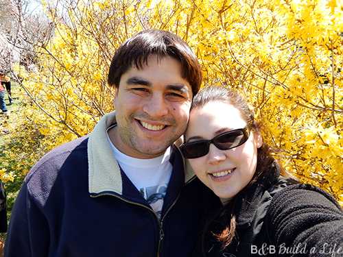 We did find some blooms though, and tried to recreate the pictures we took last year. But with limited blooms that were only cascading vertically, it was hard to get that peeking look. But these were funny nonetheless.