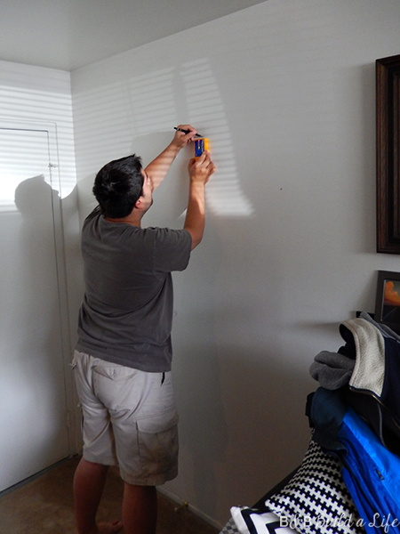 Once the studs were marked and we double checked the positioning of the cubby, it was time to put the drill to work!