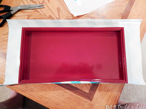 To start, I carefully lined up the chevron pattern to the top of the box and wrapped it around neatly.