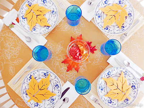 Of course you can’t forget the towels that we’re using as fabric napkins. I thought about making some cute little napkin rings, but again wanted it simple so I left them as is. Their cute leaf pattern adds some color to the table and the fabric makes it a little fancier than every-day paper ones.