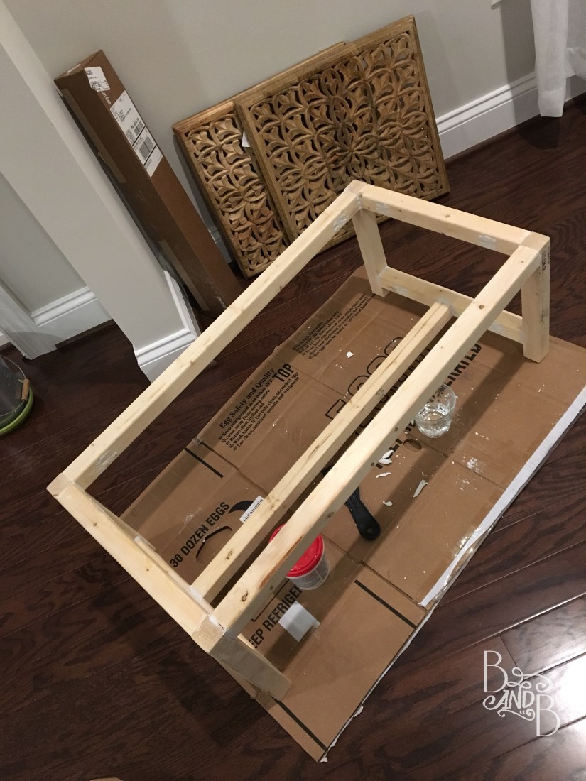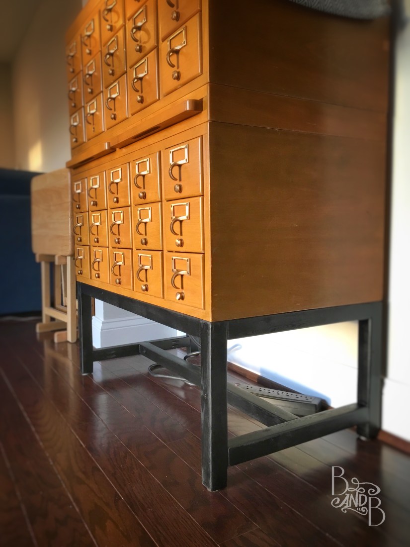 Bill’s Grandmother was using it as a night stand, which when flat on the floor it was pretty close to perfect height for. But that wasn’t what I had in mind when she gifted it to us. I saw legs in her future!